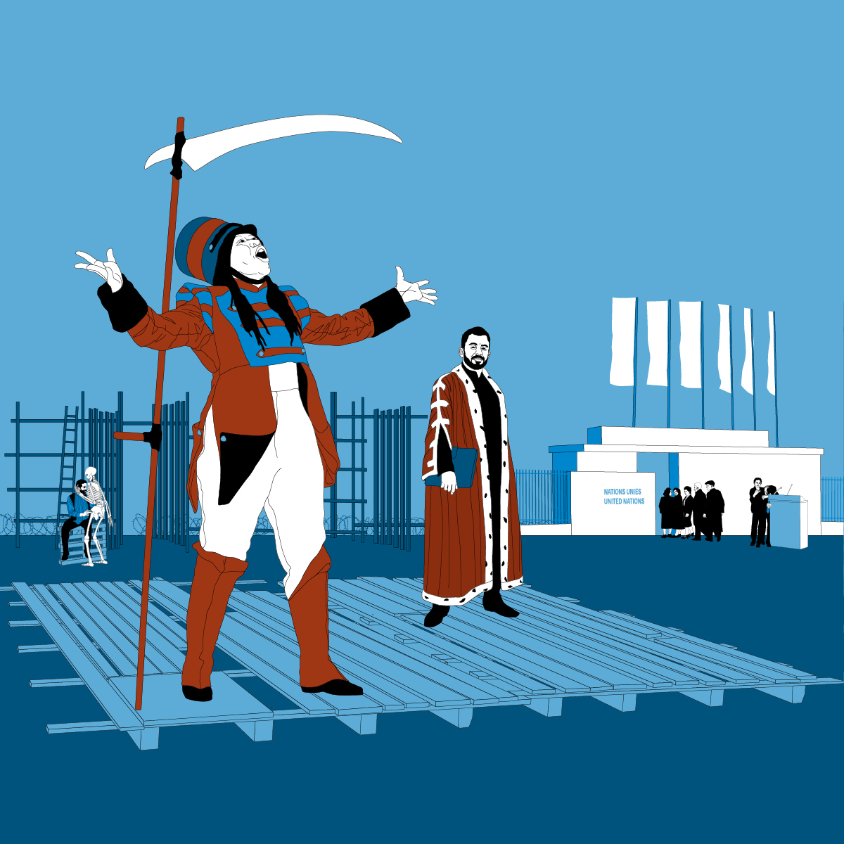 Avec L’Empereur d’Atlantis précédé d’En vertu de…, le metteur en scène belgo-luxembourgeois Stéphane Ghislain Roussel propose un diptyque opératique engagé, véritable voyage à travers le temps et l’espace. Deux pièces d’une actualité saisissante, dans deux lieux de la Genève internationale et culturelle pour une soirée placée sous le signe de la réflexion historique et politique.